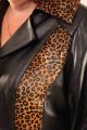 Пальто женское комбинированное из натуральной кожи и меха теленка леопардовой окраски. Силуэт слегка притален. силуэта. Воротник на стойке с лацканами. Карманы расположены в рельефах. Основной материал: натуральная кожа Капюшон: без капюшона Длина рукава: регулируемая Тип рукавов: втачной Застежка: пуговицы Сезон: теплая зима Комфортная температура: от +5 до -5 Длина по спинке 118 см