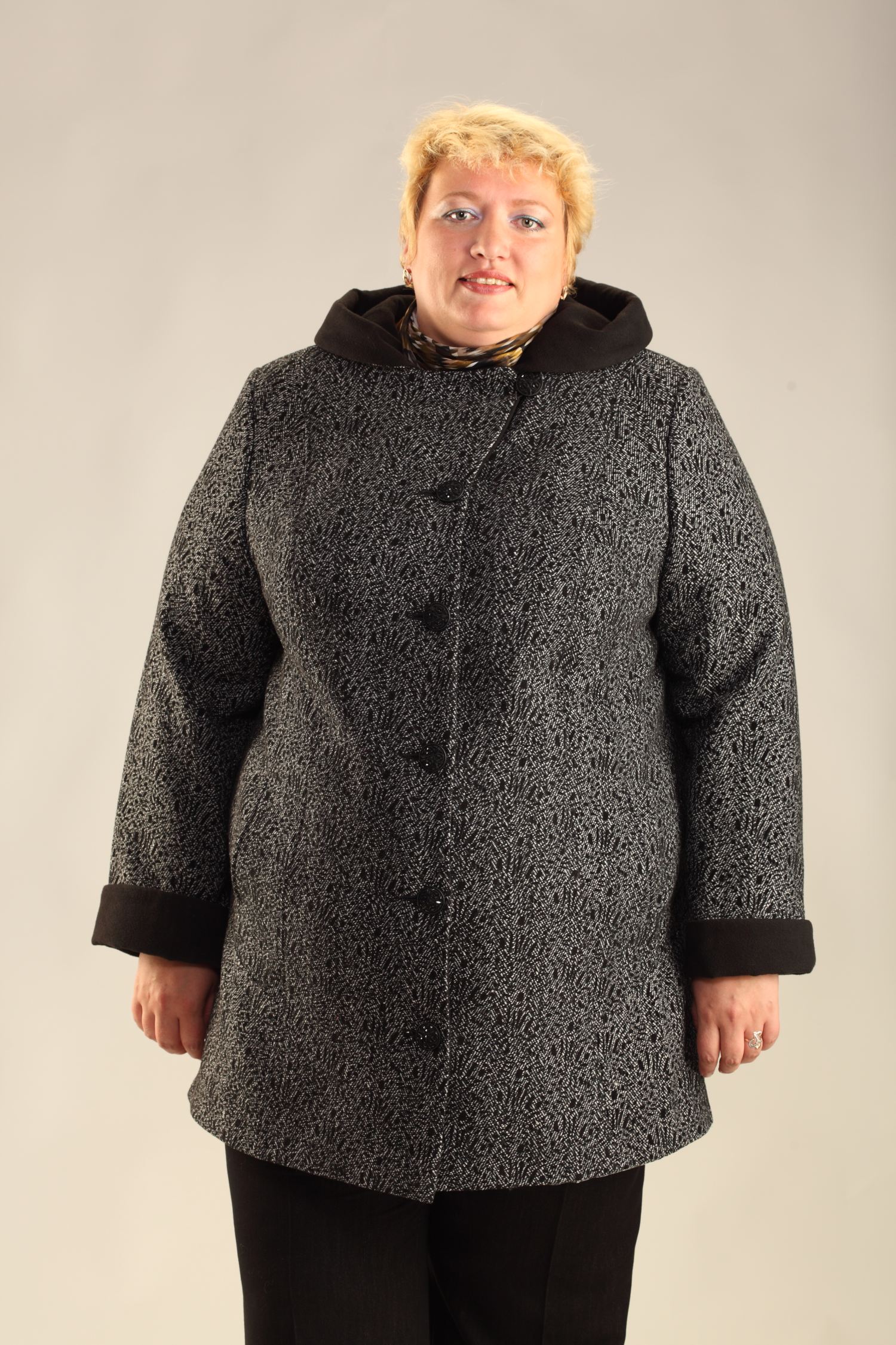 Описание: Пальто женское из драпа со съемными взаимозаменяемыми воротником и капюшоном. Сняв их, можно носить пальто с шарфом. Двойные вертикальные рельефы на бочках полочки и спинки делают силуэт изящнее, карманы располагаются в рельефах. Подкладка утеплена холлофайбером. Основной материал: драп Капюшон: отстегивающийся капюшон Длина рукава: регулируемая Тип рукавов: втачной Застежка: пуговицы Сезон: теплая зима Комфортная температура: от 0 до -10 Длина по спинке: 87 см.
