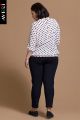 Описание: Оригинальная женская блузка больших размеров. Рукава и низ блузки на резинках. Мягкий ворот украшен спереди посередине цветком в виде брошки, а сзади застежка на полспинки на пуговицах