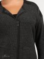 Удлиненный, трикотажный джемпер больших размеров, прямого силуэта. Рукав спущенный, длина 3/4. Горловина круглой формы. Карман настрочной. Застежка молния, смещенная.Отделка кожа