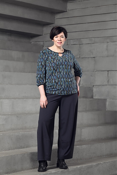 Очень женственная и интересная блуза в оригинальной расцветке отлично впишется в деловой и повседневный гардероб. Выполнена из мягкой вискозы. Длина по спинке 63см. Застежка не предусмотрена