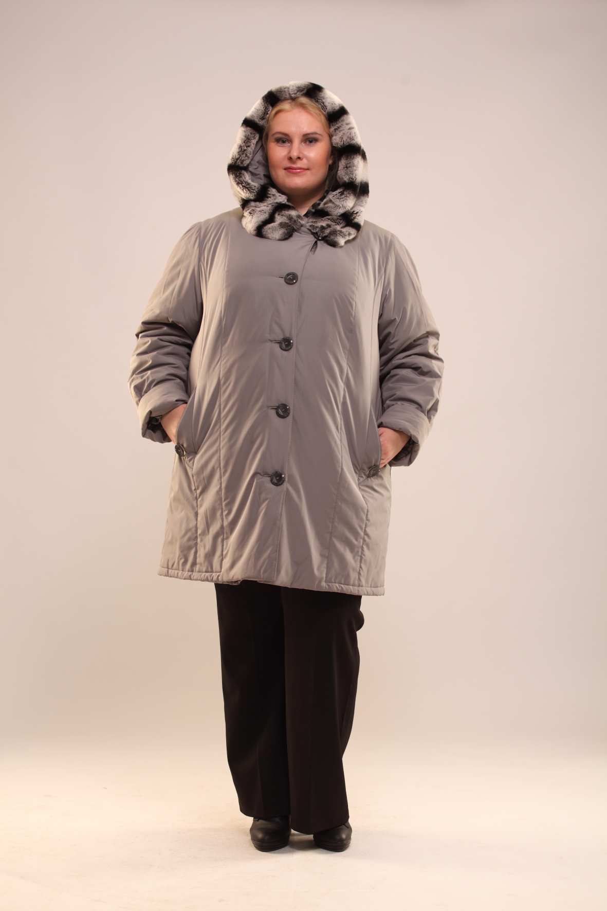 Пальто женское из плащевой ткани на синтепоне с капюшоном. Съемная опушка капюшона из натурального кролика рекс. Карманы с настрочной листочкой расположены в рельефах. Пальто утеплено подстежкой из натурального кролика. Основной материал: полиэстер Капюшон: не отстегивающийся капюшон Длина рукава: регулируемая Тип рукавов: полуреглан Застежка: пуговицы Сезон: холодная зима Комфортная температура: от -10 до -30 Длина по спинке: 92 см.