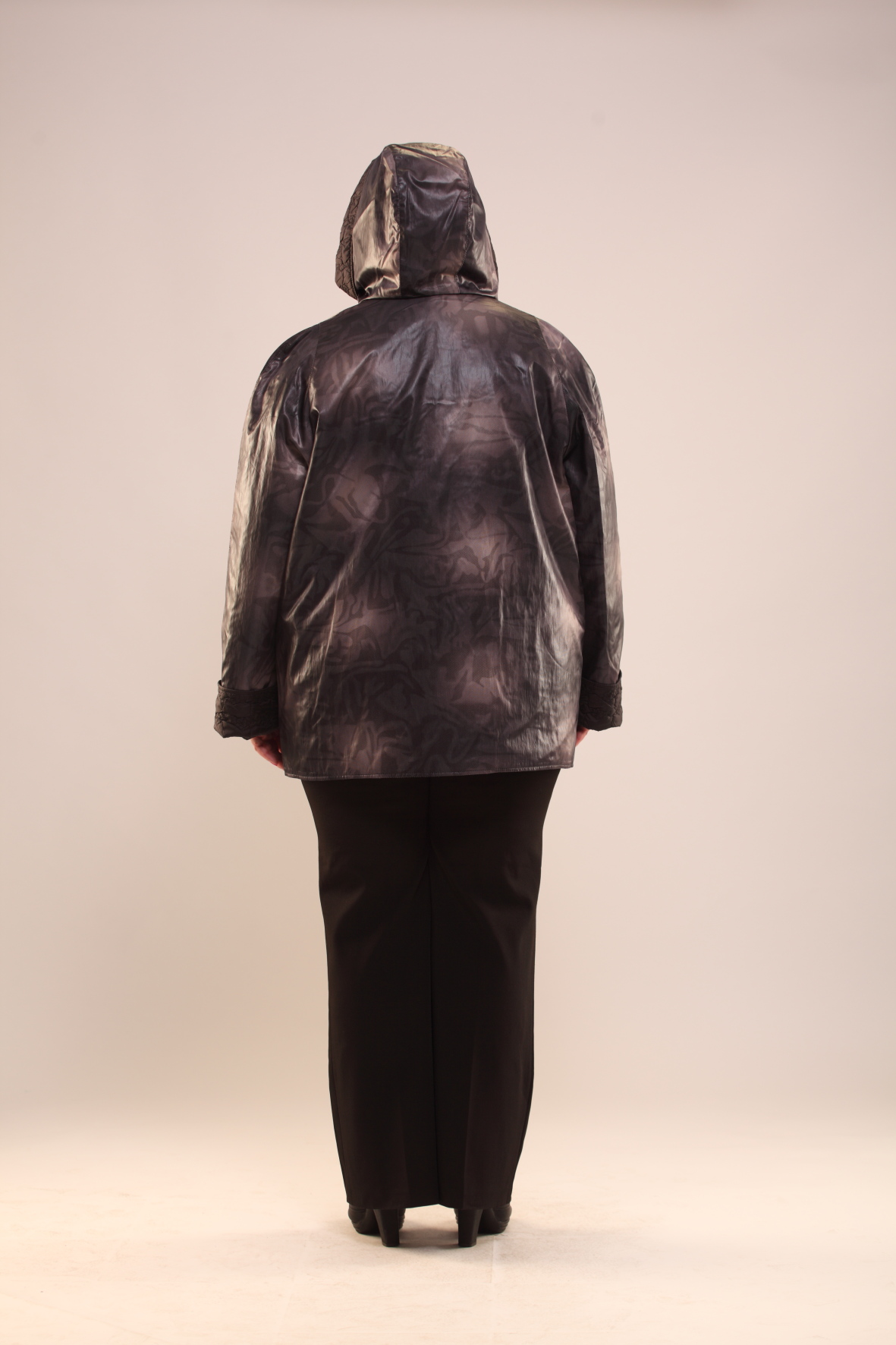 Куртка женская двусторонняя, скомбинирована из стеганой плащевки черного цвета и плащевки с принтом. Рукав покроя полуреглан обеспечивает хорошую посадку и свободу движения. Карманы прорезные. Основной материал: комбинированная Капюшон: не отстегивающийся капюшон Длина рукава: регулируемая Тип рукавов: полуреглан Застежка: пуговицы Сезон: весна/осень Комфортная температура: от +15 до +5 Длина по спинке: 79 см.