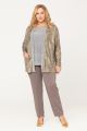 Описание: Классический комплект состоящий из топа и кардигана незаменимая вещь в гардеробе. Двойка уникальна своим сочетанием простого удобного кроя и необычной ткани. Кардиган выполнен из меланжевого трикотажа с золотистым накатом с рисунком в виде «ракушек». Топ приталенного силуэта с коротким рукавом, кардиган свободного кроя с накладным карманами и длинным рукавом.