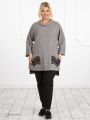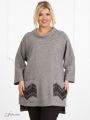 Прямой, удлиненный трикотажный джемпер. Рукав реглан, три четверти. Воротник хомут. На полочке два накладных кармана, в отделке которых используется итальянское кружево. Низ изделия разноуровневый. Свободный крой и современные материалы позволят чувствовать себя комфортно и уверенно.