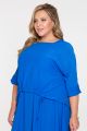 Яркий нарядный комплект в стиле раскрепощённого «бохо» для тех, кто ценит в одежде оригинальность, тактильный комфорт и с интересом следит за модными тенденциями. Слегка крэшированная структуратекстиля, в составе которого вискоза и немного нейлона, подчёркивает цельность силуэта «oversize», созданного оригинальным кроем. Конфигурация рельефов платья, подрезы под грудью, защипы-подвесы по бокам формируют объём деликатно скрывающий фигуру, позволяя женщине чувствовать себя свободной и самодостаточной. Плавную линию плеча верхней блузы моделирует рукав-реглан длиной 3/4, завершающийся широкой манжетой с разрезом. У блузы достаточно широкий вырез-лодочка, слегка открывающий бретели платья – дань актуальной многослойности. Фигурный низ полочки по переду обработан кулиской с продетым шнуром, позволяющим менять объем по низу и дополнительно декорировать блузку изящной драпировкой.
