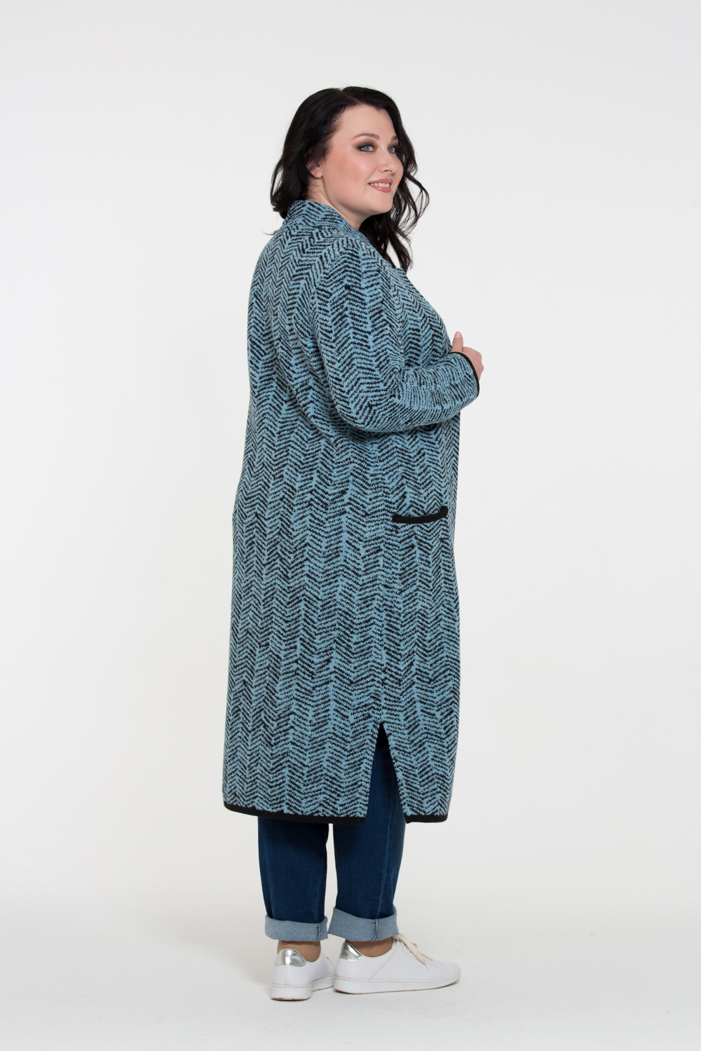 Шикарное вязаное пальто из буклированной пряжи, связанное жаккардовым узором с имитацией твидового переплетения - невероятно актуальная вещь для начала осени! Пальто прямого силуэта с пиджачным воротником и накладными карманами связано объемной и плотной жаккардовой вязкой. В копмлекте пояс из основного полотна, по бокам пальто небольшие разрезы