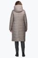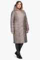 Стильное пальто, полуприлегающего силуэта, длина чуть ниже линии колен, отстегано горизонтальной строчкой. Втачной рукав, карманы в шве закрываются на потайные молнии. Центральная часть полочки и капюшон выполнены из ткани-компаньона, ткань близкая по цвету, но разная по фактуре. Пальто застегивается на молнию и краевые кнопки.