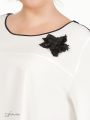 Описание: Нарядная блуза в стиле Easy-chiс, из смесовой ткани крепового переплетения. Модель расширена к низу, с высокими разрезами в боковых швах. Рукав втачной, свободный, длиной 3/4, с разрезом по нижнему шву . Линия горловины округлой формы, отделана черным кантом.Полочку украшает оригинальная брошь в виде цетка. На спингке расположена кокетка, отделанная роскошным кружевом. Удлиненная к боковым швам линия низа отлично маскирует проблемные зоны бёдер, стройнит и визуально удлиняет ноги.Модель выполнена с учетом особенностей фигуры дам нестандартных размеров, позволяет подчеркнуть их достоинства и завуалировать возможные недостатки.