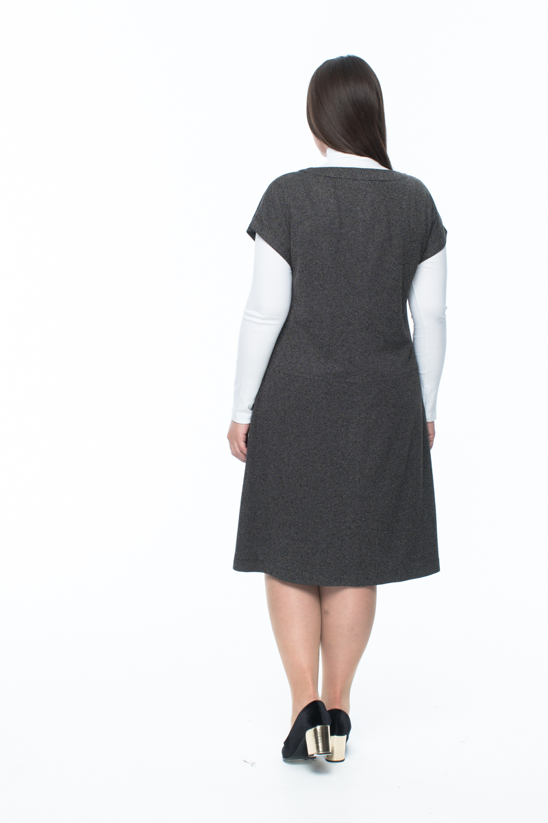 Описание: Трендовый сарафан изготовлен из трикотажного полотна, сохраняющего свои свойства при носке. На полочке в подрезах расположены карманы на молнии. Сарафан можно носить как с блузонами, так и с водолазками из нашей коллекции.