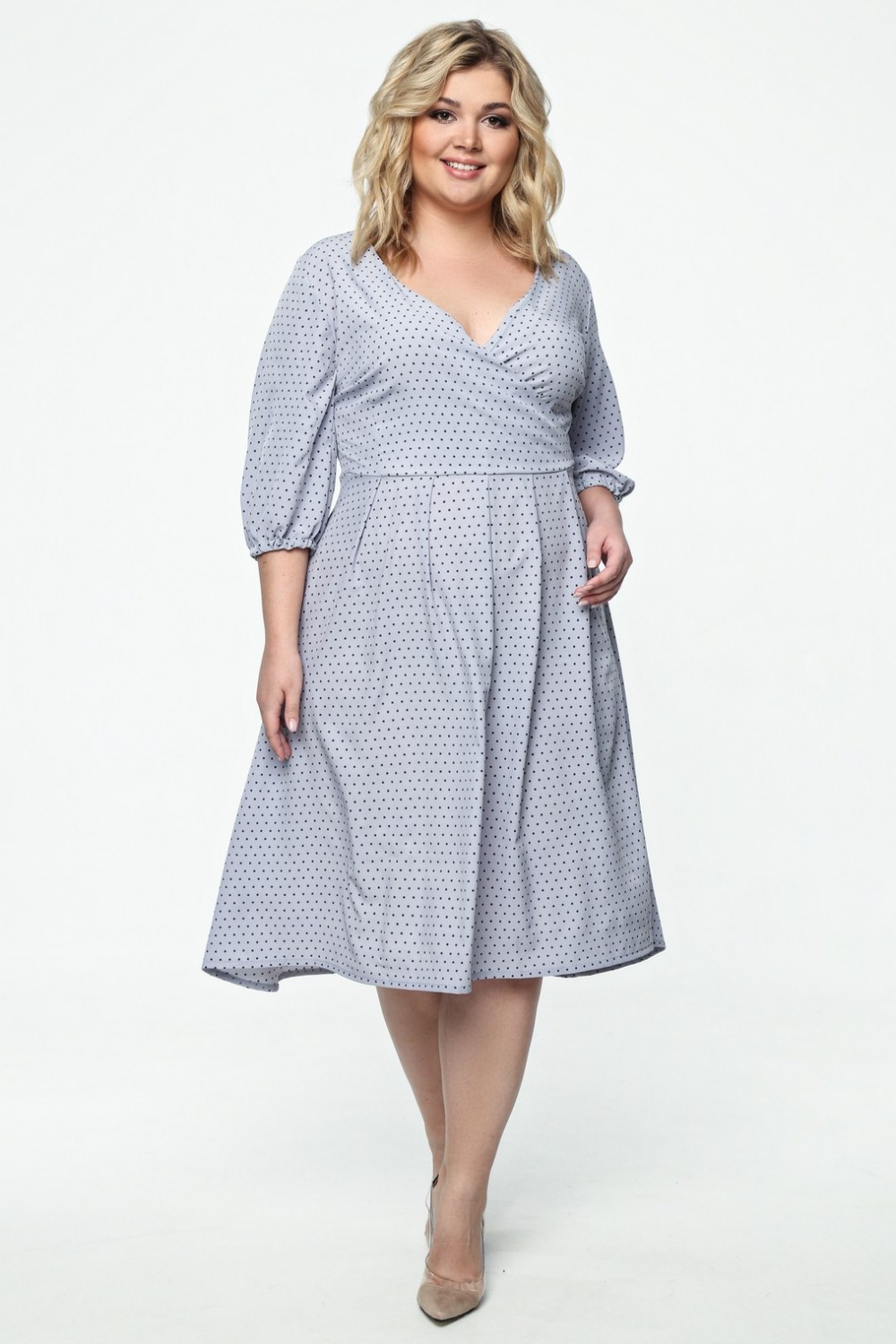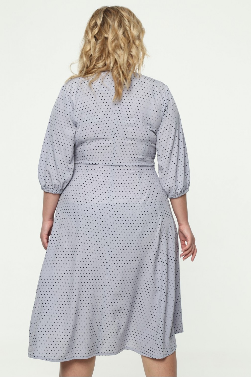 Платье серого цвета в горох, с асимметричным краем