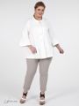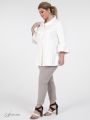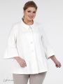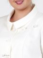 Элегантный жакет с баской, прямого силуэта с отложным воротником на стойке и застежкой на пуговицы. Модель из смесовой ткани с содержанием эластана. Рукав втачной, длиной 3/4, с воланом по низу. Модель дополнена изящной булавкой с жемчужным декором. Высококачественный материал и отличный крой изделия гарантируют безупречную посадку .