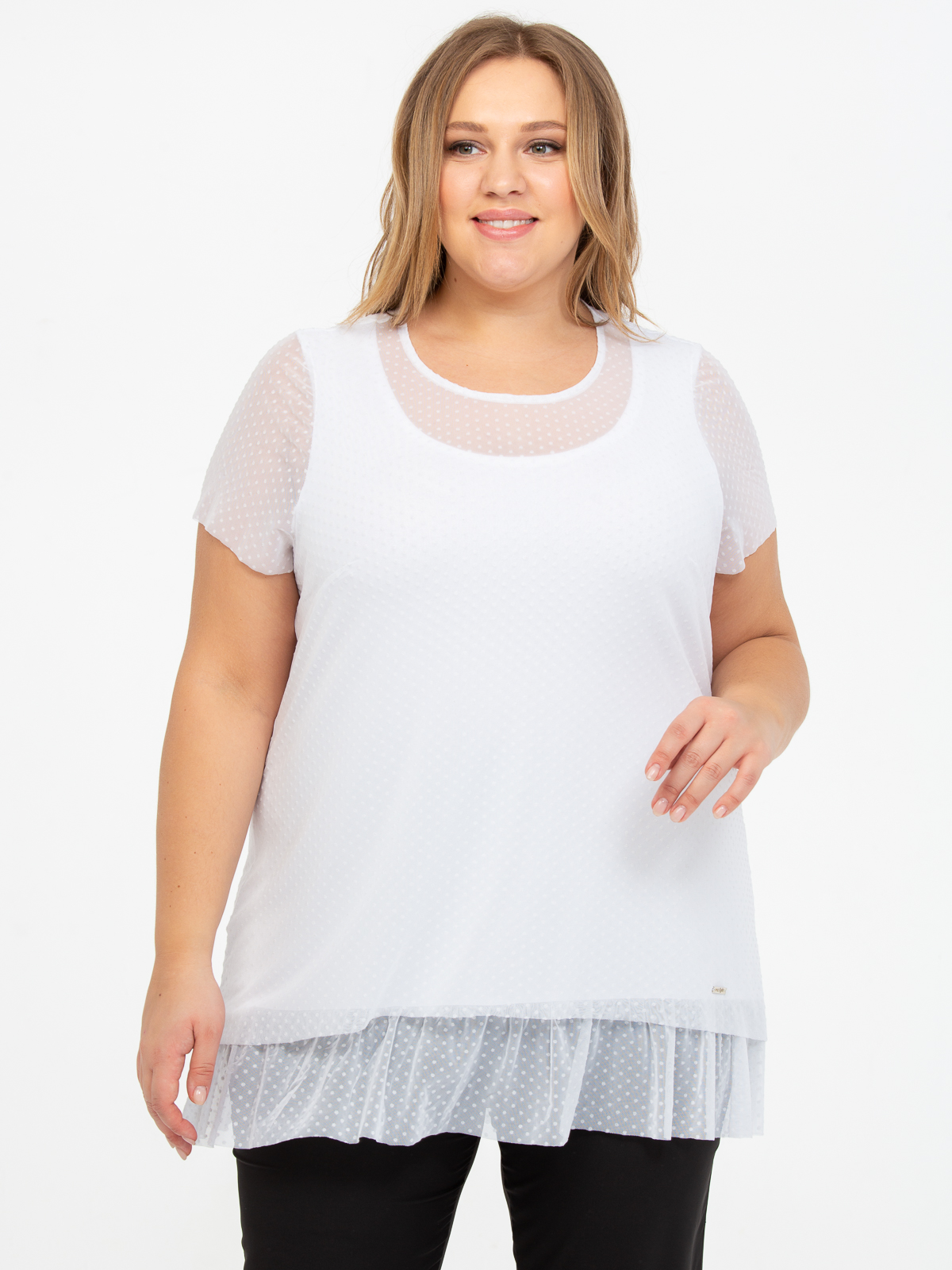 Описание: женская белая блузка с коротким рукавом больших размеров из вискозы