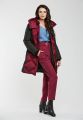 Стеганое пальто средней длины с контрастной отделкой. Интересная стежка в в виде увеличивающихся к низу квадратов. Скрытая молния и потайные кнопки. Воротник-стойка с потайными кнопками. Уютный капюшон с затяжкой –кулиской отстегивается. Функциональная кулиска также расположена и по низу пальто.