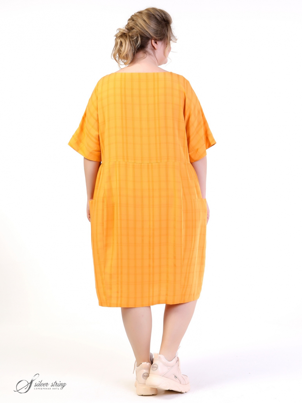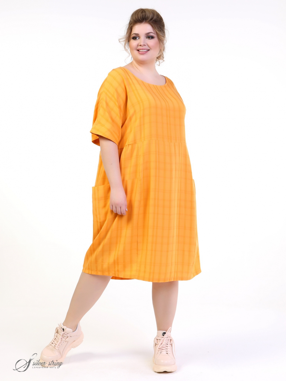 Оригинальное летнее платье длиной «за колено» изготовлено из современного материала- тенсел. Модель силуэта