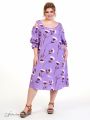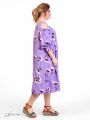 Летнее платье из натуральной ткани с ярким, модным принтом . Горловина округлой формы, расширена к плечам. Модель А-образного силуэта, с втачным рукавом, длиной 3/4. По низу рукава расположен волан, который формируется за счет эластичной резинки, настроченной в 5,5 см от нижнего края. На месте оката рукава обработана пикантная