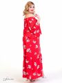 Эффектное, расширенное к низу, длинное платье из натуральной ткани. Изделие с притачным высоким воланом по низу. Рукав-реглан, длиной до локтя, по низу рукава так же притачен легкий волан. Каре-образный вырез горловины обработан планкой с эластичной тесьмой, таким образом, что платье легко можно превратить в сексуальную модель с обнаженными плечами. Отлетная пелерина, входящая в линию горловины платья, доходит до уровня талии, скрывая возможные недостатки фигуры. Яркий, оригинальный дизайн ткани позволит выглядеть свежо и модно.