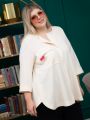 Оригинальный облегченный жакет свободного силуэта выполнен из пластичного, фактурного полотна. Рукав втачной, длиной 3/4, с отворотом по низу. Супатная застежка обработана с помощью застежки-молнии. На правой стороне полочки расположен крупный накладной карман с клапаном. На спинке проходит кокетка, с выходящей встречной складкой. В боковых швах обработаны шлицы скругленной формы. Модель подойдет для создания разнообразных летних ансамблей, дополнит Ваш образ элегантной и стильной женщины