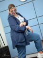 Оригинальный жакет, стилизованный под ветровку, прямого силуэта, выполнен из смесового полотна. Модель с капюшоном и застежкой на кнопки. Вдоль лицевого выреза куртки и по низу изделия проложена эластичная тесьма-затяжка с фиксаторами длины. От бока до бока полочку пересекает наклонный подрез. Асимметрию модели подчеркивают разнокалиберные карманы. На правой стороне полочки настрочен крупный накладной карман-портфель, на левой стороне, вдоль подреза, обработан карман с клапаном. Рукав состоит из двух деталей, соединенных между собой застежкой на кнопки. Низ рукава присобран на эластичную тесьму. За счет необычного кроя, модель выглядит динамично и свежо