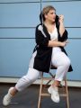Оригинальный блузон прямого силуэта, с капюшоном, выполнен из тканей-компаньонов с высоким содержанием хлопка. Модель с удлиненной линией плеча и рукавом, длиной 3/4. На правой полочке расположена асимметричная кокетка из отделочной ткани. Контрастная отделка проходит по лицевому срезу капюшона, вдоль застежки-молнии по борту и по карману на левой полочке. Подрезы по левому рукаву и по середине спинки подчекнуты отлетными складками из отделочного материала с декором из крупных металлических люверсов. Это оригинальная модель, которая прекрасно впишется в Ваш гардероб и станет незаменимой при создании разнообразных комплектов