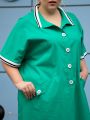 Яркое платье Т-образного силуэта из однотонной эластичной ткани с высоким содержанием хлопка. Модель с цельнокроеным рукавом, длиной до локтя. Застежка