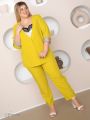 Стильный жакет полуприлегающего силуэта из натуральной смесовой ткани. Модель с У-образной углубленной горловиной и застежкой на пару крупных пуговиц. Для комфортной эксплуатации в рукава и на спинку подведена подкладка. Рукав втачной, длинный. В локтевом шве обработан разрез, позволяющий легко подвернуть рукав до нужной длины. На полочке расположены прорезные карманы с листочкой. Это элегантная модель выполнена в стиле smart-casual, где классические элементы поданы легко и непринужденно, а удобство повседневности сочетается с подтянутостью и сдержанностью делового стиля.