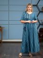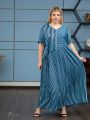 Эффектное длинное платье прямого силуэта с асимметрично отрезанным лифом и высокой оборкой по низу. Изделие выполнено из натуральных тканей-компаньонов, с рисунком в полоску, что является безусловным трендом сезона. Сатиновое переплетение нитей в полотне, придает материалу бархатистость и приятный блеск. Рукав втачной, длиной до локтя, с отворотом по низу. Линия горловины У-образной формы. На полочке расположена застежка на пуговицы, доходящая до уровня подреза. Линия подреза лифа удлинена к правому боку, там же расположен карман. Вход в карман задекорирован репсовой тесьмой. Аналогичная тесьма проходит вдоль левого плечевого шва, свободно спускаясь на рукав. Графичный рисунок ткани подчеркивает оригинальность модели. Платье прекрасно подойдет для летнего отдыха, в нем вы будете чувствовать себя комфортно при любых обстоятельствах