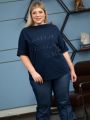 Модный трикотажный блузон прямого силуэта с цельнокроенным рукавом, длиной до локтя. Модель выполнена из качественного хлопкового трикотажного полотна. Горловина, в виде цельнокроенной стойки, расширена к плечам, и обработана с открытым срезом . За счет особенностей трикотажного полотна срез закручивается наружу, образуя легкий валик. Полочка декорирована стильным принтом из термостраз. Это модная и оригинальная вещь, которая прекрасно впишется в Ваш гардероб как самостоятельное изделие, а также станет незаменимой при создании разнообразных комплектов.