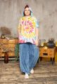 Туника выполнена в стиле тай-дай. Капюшон стягивается кулиской. Отделка - необработанные края, декоративные дырки.