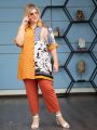 Описание: Оригинальная блуза свободного силуэта, с цельнокроеным рукавом, длиной 3/4 . Модель изготовлена из высококачественных натуральных тканей компаньонов с оригинальным принтом, выполненным в технике digital. Воротник рубашечный на стойке. По низу рукава расположен мягкий отворот. Крой модели скрывает возможные недостатки фигуры, стройнит и позволяет выглядеть модно и стильно.