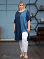 Описание: Модная удлиненная туника прямого силуэта выполнена из тканей- компаньонов, с высоким содержанием натурального волокна . Сатиновое переплетение нитей в полотне, придает материалу бархатистость и приятный блеск . Полочка и спинка имеют вертикальные сечения по центру деталей. Левая часть полочки значительно короче основной длины. Эффект асимметрии усилен за счет того, что левые и правые части изготовлены из тканей разного цвета. Линия горловины округлой формы, слегка расширена к плечам. Рукав втачной, просторный, длиной за локоть. За счет графичного кроя, изделие позволяет зрительно сделать фигуру стройнее, придавая легкость Вашему образу.