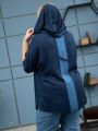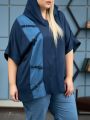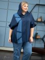 Оригинальный блузон в спортивном стиле, Т-образного силуэта, с капюшоном, выполнен из тканей-компаньонов с высоким содержанием хлопка. Сатиновое переплетение нитей в полотне, придает материалу бархатистость и приятный блеск. Модель с цельнокроеным рукавом, длиной до локтя. На правой полочке расположена вертикальная вставка из отделочной ткани. Стороны вставки как бы стянуты наклонными патами с декоративными пряжками. Аналогичная вставка проходит и по центру спинки, деталь пересекает одна пата с пряжкой. В боковых швах обработаны разрезы. Модель позволит завуалировать возможные недостатки фигуры и подчеркнет её достоинства.