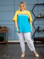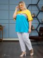 Оригинальная блуза Т-образного силуэта с коротким рукавом. Изделие выполнено из ярких тканей- компаньонов, с высоким содержанием натурального волокна . Сатиновое переплетение нитей в полотне, придает материалу приятный блеск . Линия горловины округлой формы, слегка расширена к плечам. Полочка и спинка разделены горизонтальными линиями сечения, создающими динамичный рисунок модели. Низ просторного рукава оформлен отворотом . В боковых швах расположены разрезы. Это оригинальная модель, которая прекрасно впишется в Ваш гардероб и подарит настроение и комфорт.
