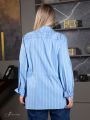 Стильная блуза-рубашка из эластичной, смесовой ткани с рисунком в полоску. Модель прямого силуэта, с воротником-стойкой. Рукав длинный, с притачной манжетой. Манжета двухслойная и имеет оригинальную конструкцию: верхнюю часть манжеты можно носить «на отворот», тем самым делая рукав чуть короче. На нижней части манжеты нанесён яркий принт. Аналогичные принты расположены на стойке и нагрудном кармане. По спинке проходит внутренняя кулиса с затяжкой, с помощью которой можно моделировать силуэт блузы на свое усмотрение. Это модная и оригинальная вещь, которая прекрасно впишется в Ваш гардероб как самостоятельное изделие, а также станет незаменимой при создании разнообразных комплектов.