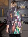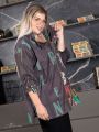 Оригинальный блузон в спортивном стиле, изготовлен из эластичного материала с высоким содержанием хлопка. Ткань с эффектным рисунком, в виде россыпи букв разного размера и цвета, отличается шелковистой и мягкой поверхностью. Модель прямого силуэта, с удлиненной линией плеча и с застежкой на молнию. Рукав длиной 3/4, с кулисой-затяжкой по низу. По центру рукава обработана вертикальная вставка с декоративной молнией, с помощью которой можно регулировать объем рукава. Линия горловины широкая, с объемным воротником-стойкой. Вдоль отлета стойки проложена кулиса с затяжкой и фиксаторами, с помощью которых можно моделировать форму воротника и степень прилегания к телу. В боковых швах блузы обработаны разрезы формы. Эффектный дизайн и отличная посадка изделия помогут подчеркнуть Вашу индивидуальность и стиль.