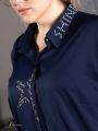 Описание: Эффектная блуза полуприлегающего силуэта в стиле «Casual» выполнена из гладкокрашеной ткани с высоким содержанием хлопкового волокна. Особого внимания заслуживает качество материала: ткань шелковистая, приятная на ощупь, с благородным блеском. По борту расположена супатная застежка на пуговицы. Воротник рубашечный, на стойке. Рукав длинный, с притачной манжетой. Уступ манжеты треугольной формы. Пуговицы смещены к верхнему краю, что бы манжету можно было носить «на отворот», тем самым регулируя длину рукава. Правый борт украшает стильная термоаппликация. Левая сторона воротника также отделана термохольнитенами. В боковых швах обработаны разрезы. Изысканная ткань и отличная посадка изделия помогут подчеркнуть Вашу индивидуальность и стиль.