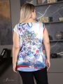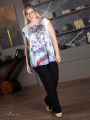 Легкая блуза из шелковистой смесовой ткани. Модель прямого силуэта, с цельнокроеным коротким рукавом. Линия горловины округлой формы, слегка расширена к плечам. В боковых швах обработаны разрезы. Модель незаменима для создания комплектов для торжественных случаев и праздничных мероприятий т.к. прекрасно сочетается с различными жакетами, кардиганами и блузонами.