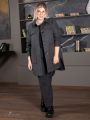 Модный жакет из смесовой ткани, стилизован под рубашку. Полотно изготовлено из нитей двух цветов саржевым переплетением, с рисунком “ёлочкой”. Модель прямого силуэта, с отложным воротником и длинным рубашечным рукавом с притачной манжетой. На полочке настрочены крупные накладные карманы с боковым входом. По линии груди расположены фигурные клапана. Линия низа оформлена асимметрично: спинка длиннее, чем полочка. В боковых швах обработаны разрезы. Застежка на крупные пуговицы. Это современная модель, призванная подчеркнуть стиль каждой женщины, независимо от её форм.