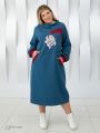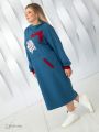 Модное платье, в спортивном стиле, выполнено из трикотажного полотна «футер» на основе комбинации двух контрастных цветов. Футер это один из самых востребованных современных материалов, который обладает эластичностью и устойчивостью к деформации. Модель прямого силуэта, длиной до середины икры, с втачным длинным рукавом. Низ рукава обработан трикотажной манжетой контрастного цвета. Горловина, в виде цельнокроеной стойки, расширена к плечам. На полочке расположены прорезные карманы с листочками из отделочного материала. На уровне груди настрочены отделочные детали с открытым срезом. По центру большого прямоугольника нанесен контрастный принт. Принт изготовлен с использованием специального пластификатора, который позволяет рисунку выдерживать длительную эксплуатацию изделия. Фасон платья прекрасно скроет возможные недостатки фигуры и поможет Вам выглядеть всегда модно и стильно.