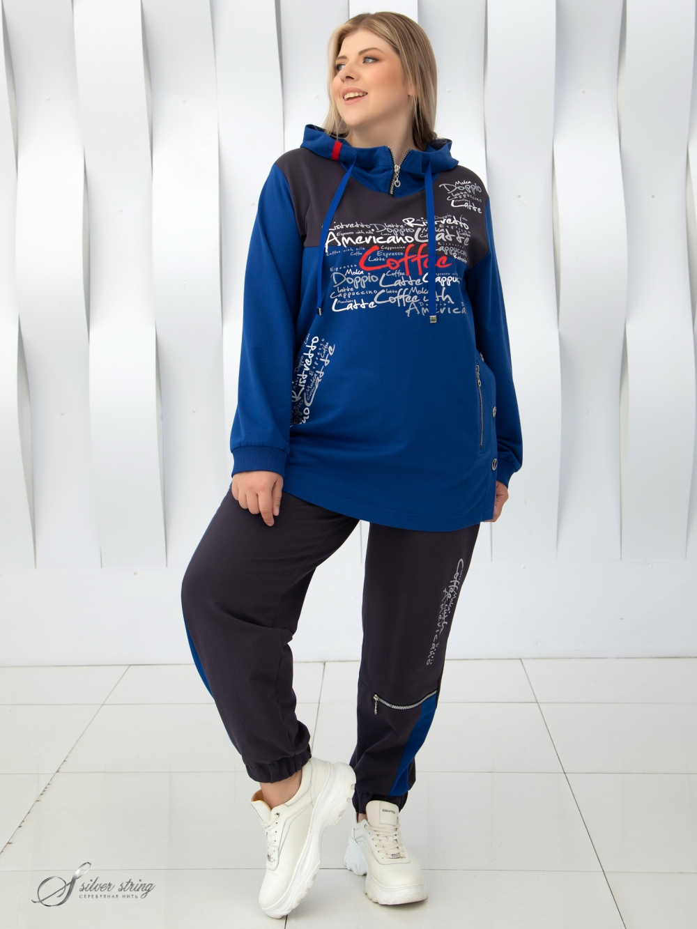 Описание: Оригинальный джемпер-обманка с капюшоном, прямого силуэта, изготовлен на основе комбинации трикотажного полотна - «футер» и сорочечной ткани. Футер это один из самых востребованных современных материалов, который обладает эластичностью и устойчивостью к деформации. Модель имитирует худи, надетый поверх удлиненной рубашки с асимметричным низом. Рукав втачной, длинный, с трикотажной манжетой контрастного цвета по низу. По центру полочки нанесён оригинальный принт, который нашёл своё продолжение в рисунке на нижней части изделия. При изготовлении принта использовались специальные пластификаторы, которые позволяет рисунку выдерживать длительную эксплуатацию. Модель отлично скрывает проблемные зоны, а оригинальный дизайн позволит выглядеть модно и стильно.