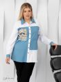 Описание: Эффектная блуза-рубашка в стиле «Casual» выполнена из гладкокрашеных тканей-компаньонов с высоким содержанием хлопкового волокна. Особого внимания заслуживает качество материала: ткань шелковистая, приятная на ощупь, с благородным блеском. Воротник рубашечный, на стойке. Рукав длинный, с притачной манжетой. Обхват манжеты можно корректировать с помощью парных пуговиц. На полочке и спинке обработаны подрезные кокетки контрастного цвета. По полочке расположены накладные карманы с оригинальными принтами. При изготовлении принтов использовались специальные материалы, которые позволяет рисунку выдерживать длительную эксплуатацию. По борту проходят притачные планки с застежкой на пуговицы. В боковых швах обработаны разрезы. Яркая комбинация ткани и принтов придает изделию динамику и графичность, что в сочетании с отличной посадкой позволит Вам выглядеть современно и стильно.