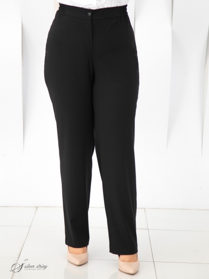 Классические прямые брюки из мягкой смесовой ткани с эластаном. Для комфорта и удобной эксплуатации, по поясу задних половинок брюк проложена эластичная тесьма, которая достигает середины переда. Центральная часть пояса имеет плотную основу. Силуэт брюк великолепно стройнит фигуру, а ткань позволяет обеспечить максимальный комфорт и безупречную посадку.