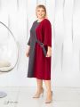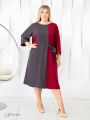 Эффектное платье прямого силуэта, длиной до середины икры, выполнено на основе двухцветной комбинации из натуральной смесовой ткани с эластаном. Модель с втачным рукавом, длиной 3/4. Низ рукава оформлен отворотом. Линия горловины округлой формы. Комбинация цвета поддерживает асимметрию кроя изделия. На правой стороне полочки обработан карман, а с левой стороны расположен хлястик с затяжкой на полукольца. На спинке из отделочной ткани выполнен только левый бочок. Это оригинальная модель, которая завораживает необычным сочетанием деталей .