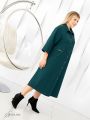 Оригинальное платье А-образного силуэта из смесовой ткани с эластаном. Модель с рубашечным воротником на стойке. Изделие распашное до низа, с застежкой на пуговицы. На полочке и спинке обработаны подрезные кокетки. Для моделирования силуэта по фигуре, на полочке, предусмотрены кулиски с затяжками, которые фиксируются на парные пуговицы. Рукав втачной, длиной 3/4, с горизонтальными подрезами. От верхнего подреза правого рукава выходит декоративная пата. Декоративной тесьмой отделан левый борт. В боковых швах расположены удобные карманы. Посередине спинки, вдоль левой стороны полочки и по низу левого рукава расположен оригинальный принт. При создании принта использовался специальный пластификатор, который позволяет рисунку выдерживать длительную эксплуатацию изделия. В боковых швах обработаны шлицы. Удобный крой и эффектный дизайн делают модель неповторимой.