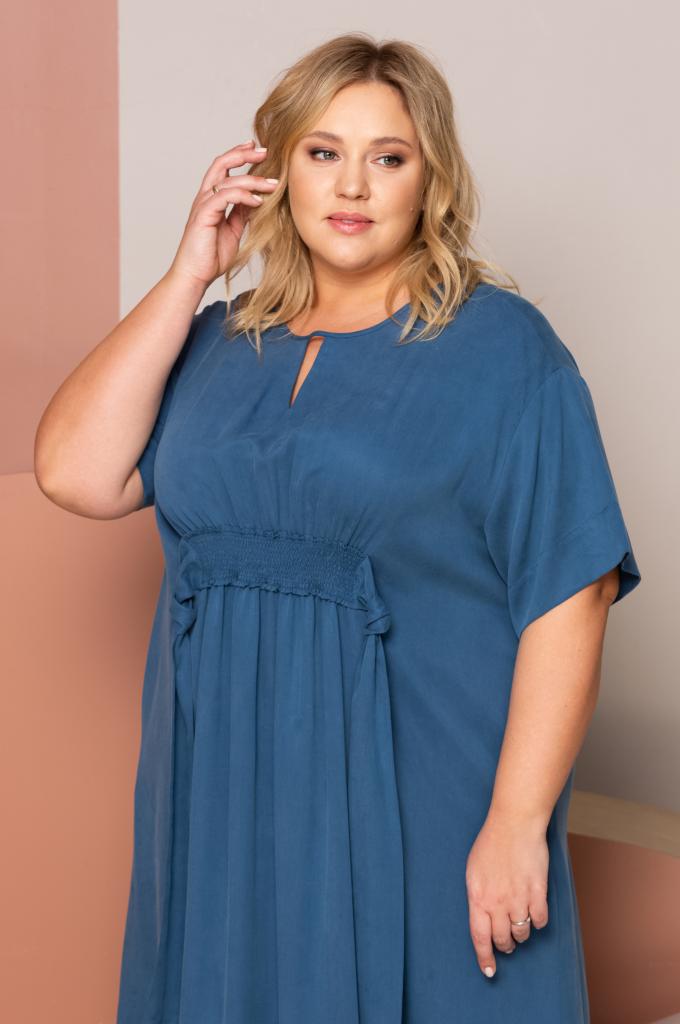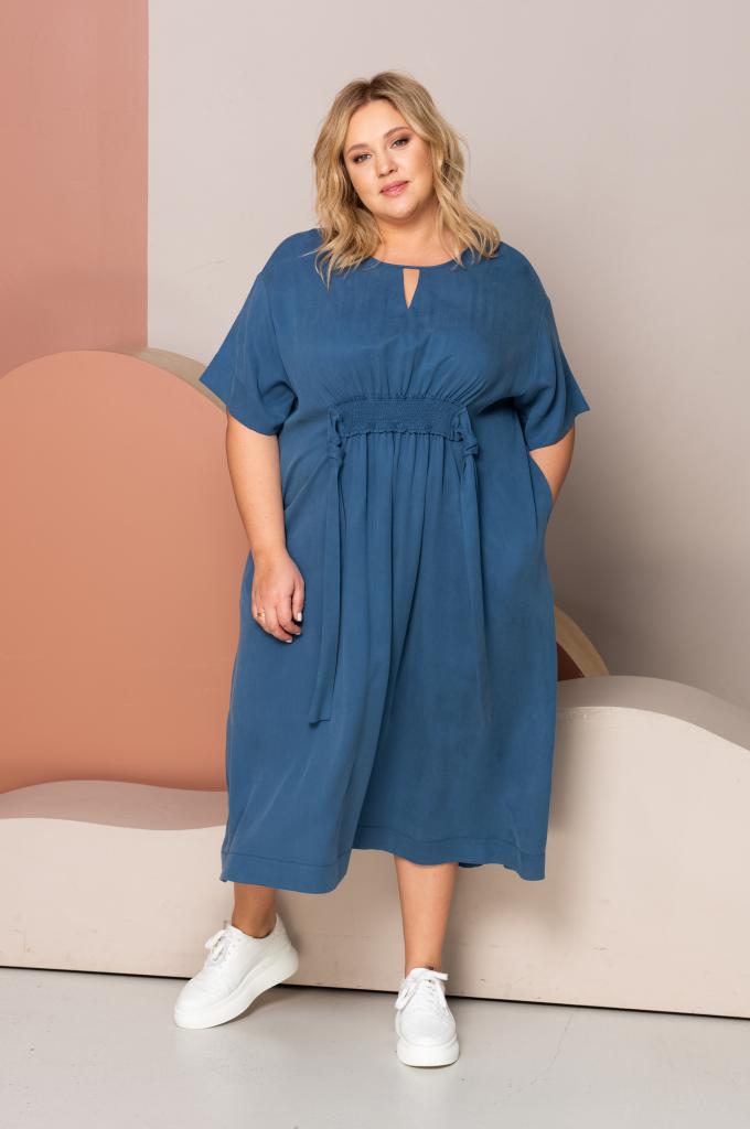 Описание: Женское синее платье больших размеров под деним с талией под грудью от бренда terra