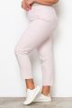 Прямые зауженные брюки из поливискозной ткани светло-розового цвета, являющимся прекрасной альтернативой белому цвету. Пояс-резинка без застежки. На передней и задней половинке брюк рельефы и фигурные кокетки для лучшей посадки изделия по фигуре. По низу брюк на задней половинке из рельефа выходят пикатные разрезы. Сзади накладные карманы