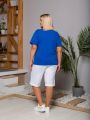 Описание: Женская синяя футболка из хлопка с принтом, отлично подойдет под джинсы, брюки, шорты