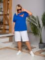Женская синяя футболка из хлопка с принтом, отлично подойдет под джинсы, брюки, шорты