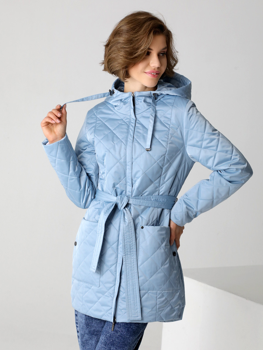 Описание: Женская демисезонная голубая куртка больших размеров прямого силуэта от бренда Диззи вэй (Dizzy way). Куртка с втачными рукавами и застежкой на двухзамковую молнию. Воротник - стойка, переходящая в капюшон. Накладные карманы имеют два входа: сверху и сбоку. Есть внутренний карман на молнии. При желании линию талии можно подчеркнуть поясом. Разноуровневая линия низа подчеркивает современный стиль в этой лаконичной, но комфортной модели куртки! Подкладка выполнена из ткани в мелкую полоску.