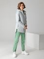 Женская демисезонная ментоловая куртка большого размера прямого силуэта от бренда Диззи вэй (Dizzy way). У куртки разноуровневая линия низа. Застежка - на двухзамковую молнию, что позволяет легко расстегнуть ее как сверху, так и снизу. Воротник - стойка, переходящая в капюшон. Длину втачного рукава можно менять с помощью отворота. Карманы удобно расположены в рельефных швах, застегиваются на молнию. Актуальности этой легкой весенней куртке придает функциональный верхний кармашек с модным принтом. Подкладка в изделии выполнена из ткани в мелкую полоску. Есть внутренний карман на молнии.